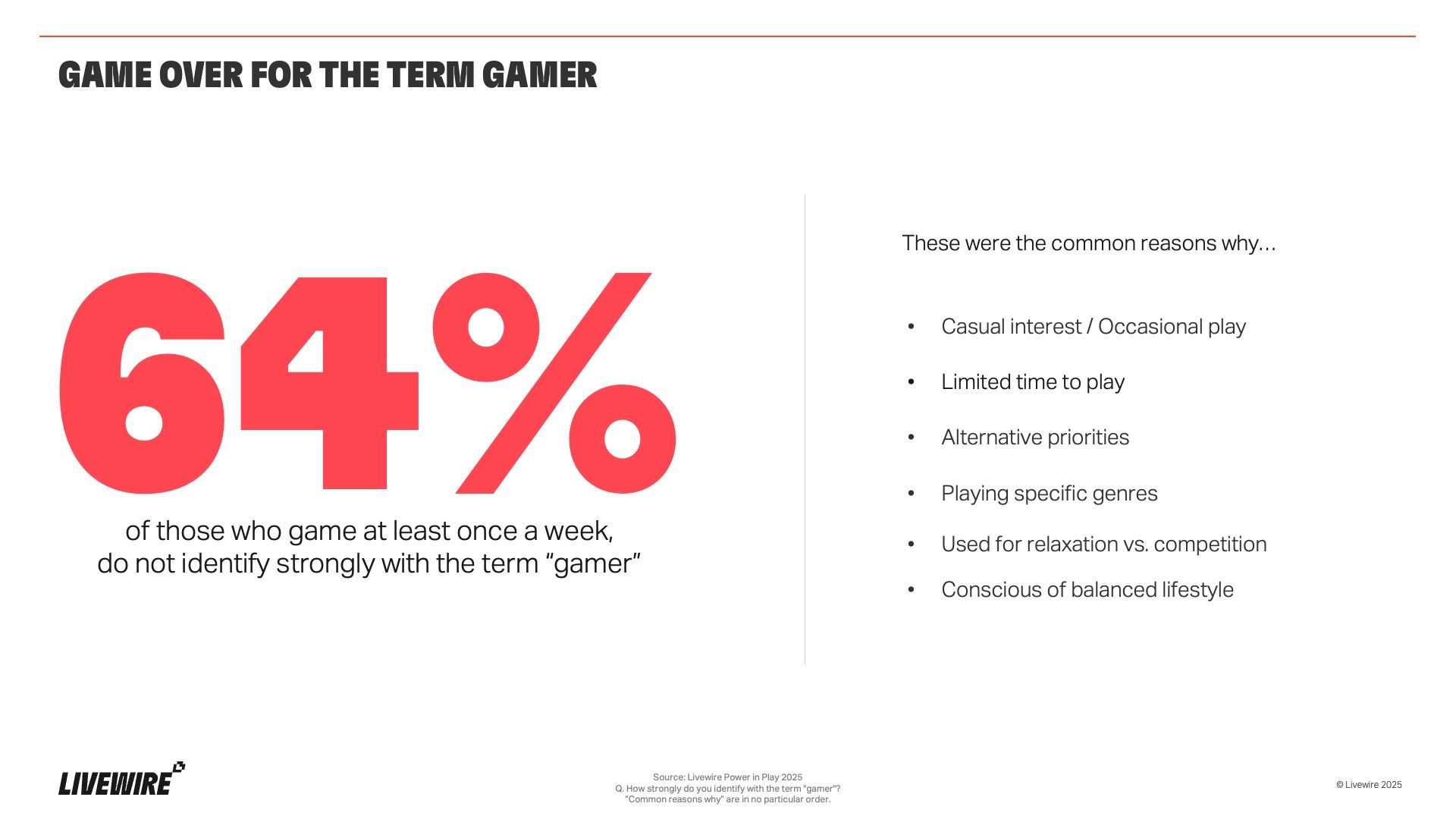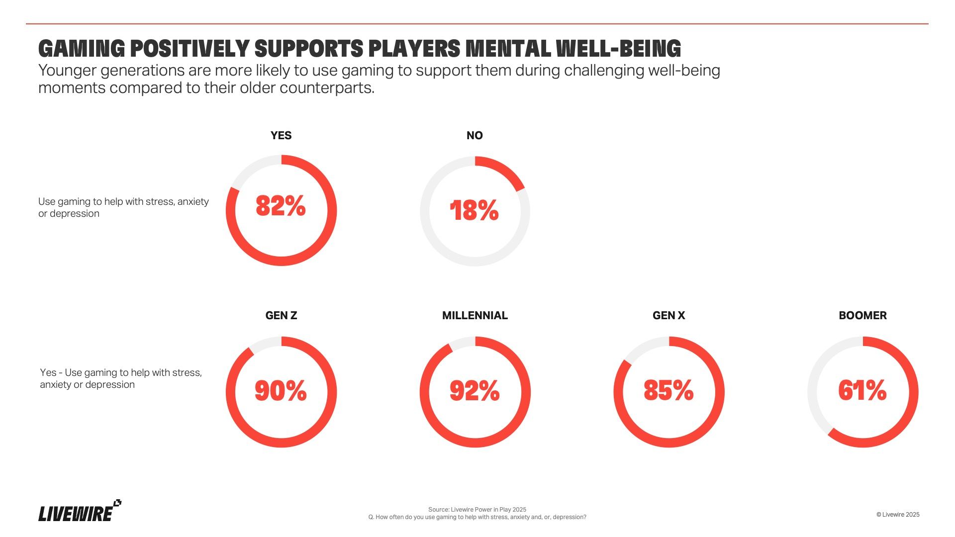 The Power in Play study surveyed more than 2,400 gamers across the US, UK, Canada, and Australia, with representation across age, gender, household income, and ethnicity. The research reveals how deeply gaming is woven into players’ sense of identity and coping strategies, while also challenging industry assumptions about what it means to be a “gamer.” Key Findings Include: